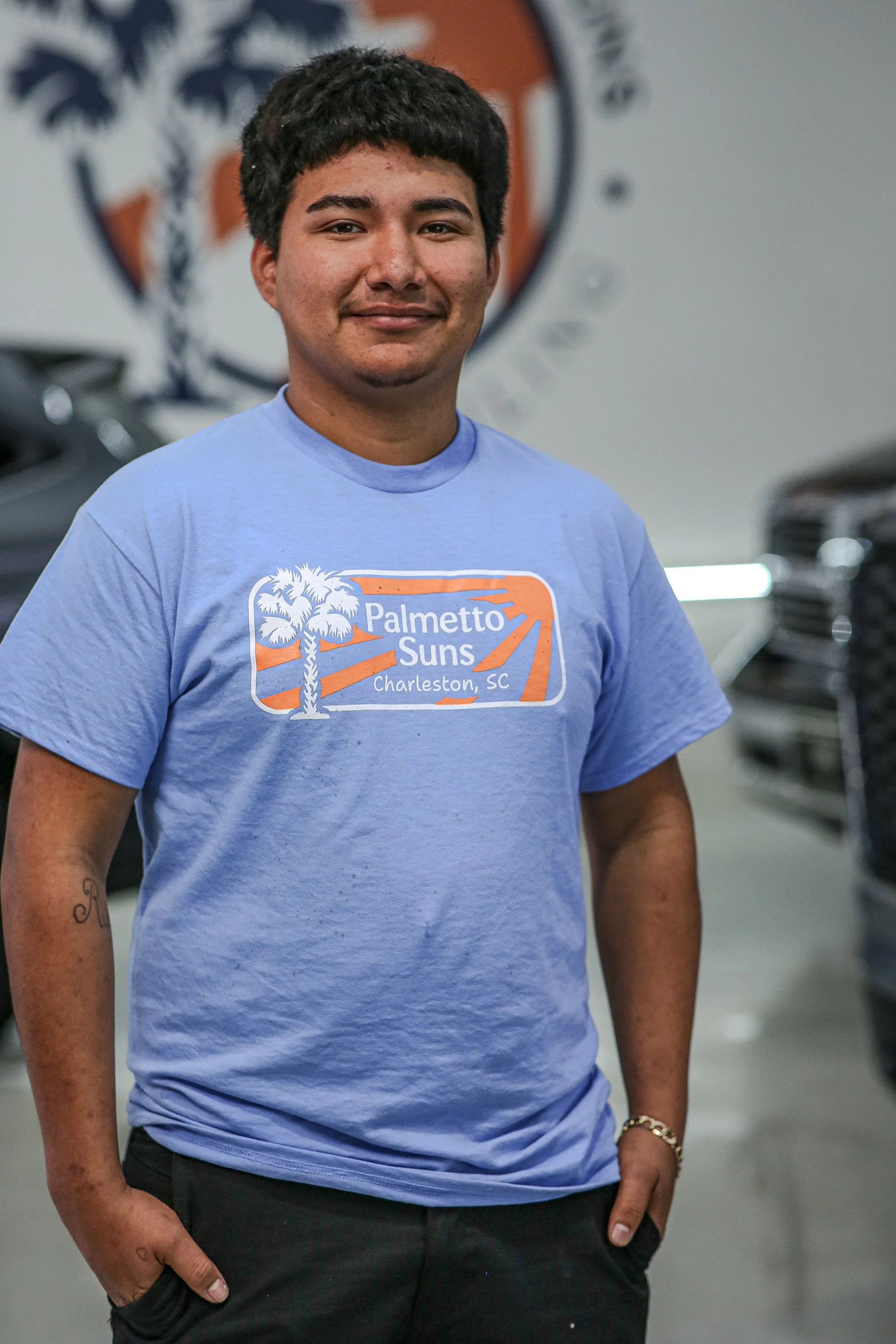 Carlos has always had a passion for cars and detailing. He had his own side hustle in his neighborhood and decided to make a career out of it at Palmetto Suns. He continues to build his craft each and every day at the shop.